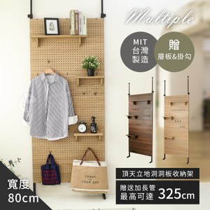 澄境 寬80公分洞洞板頂天立地置物架 收納掛架(附層板*3掛勾*12) 置物架 收納架 衣帽架 展示架漂流木紋